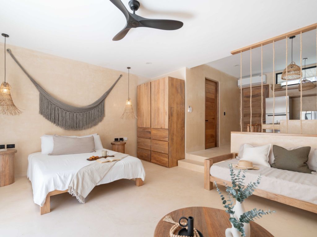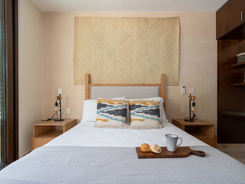 Siéntete como en casa y disfruta todo el espacio de este gran alojamiento rodeado de amenidades increibles en el corazon de aldea zama, la mejor zona de tulum ya que esta a pocos pasos de restaurantes, mini mercados, bares, cafeterías que te encantaran ademas de que estamos a 8min de la zona de plaza manejando