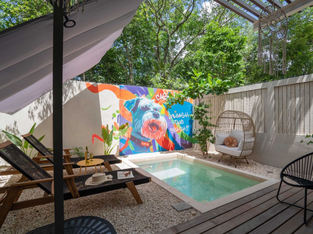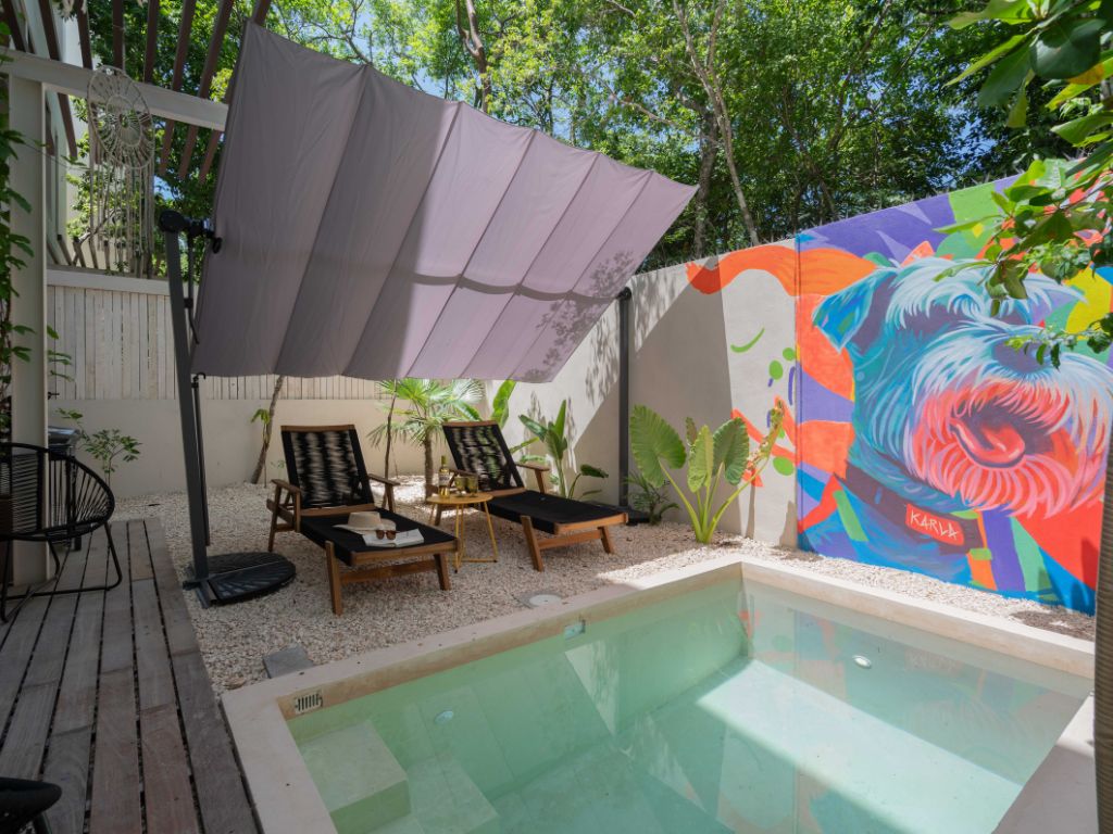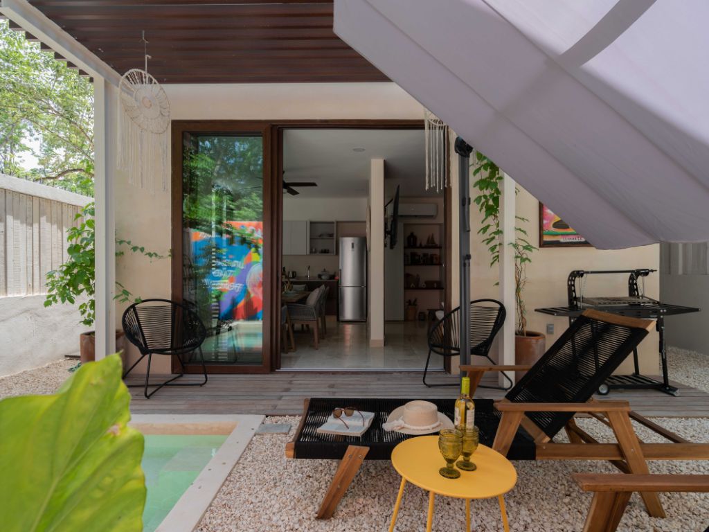 Bienvenidos a Casa Btch, nuestro paraíso en Tulum! Espacio maravilloso para disfrutar y relajarte. Es una casa con personalidad Btch, juguetona, relajada y mexicana. El alojamiento Todo lo que necesitas para disfrutar, relajarte y dejarte llevar esta aquí: Terraza con alberca privada Asador al exterior en terraza privada Sala con pantalla para ver pelis, partidos. … Continue reading “Casa Btch| Tu paraíso| Terraza & alberca privada”
