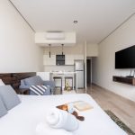 - Amenidades: Agua caliente, Aire acondicionado, Alberca, Área para trabajar, Artículos básicos de cocina, Baño, Cafetera, Caja de seguridad para llaves, Caja fuerte, Calefacción y refrigeración, Cocina, Cocina y comedor, Entretenimiento, Equipo para hacer ejercicio, Espacio para guardar ropa, Estacionamiento e instalaciones, Estacionamiento gratuito en las instalaciones, Ganchos, Gimnasio, Habitación y lavandería, Internet y oficina, Lavadora, Llegada autónoma, Persianas o cortinas opacas, Platos y cubiertos, Refrigerador, Ropa de cama, Secadora de pelo, Secadora: Gratis, en el edificio, Servicios, Shampoo, Sistema de calefacción sin conductos tipo split, TV, Wifi