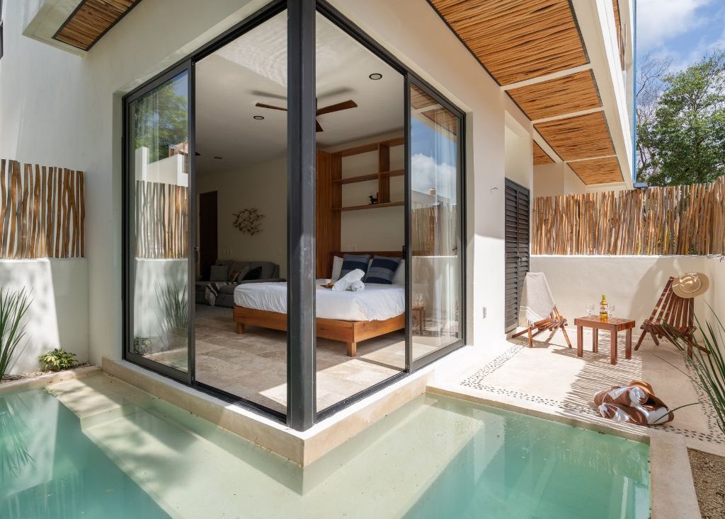 ademas de la comodidad de la entrada a la alberca en tu terraza aprovecha estar a 10 min de la zona de playa o 6 min del pueblo y pocos pasos de bares, restaurantes y mercados a pocos pasos
