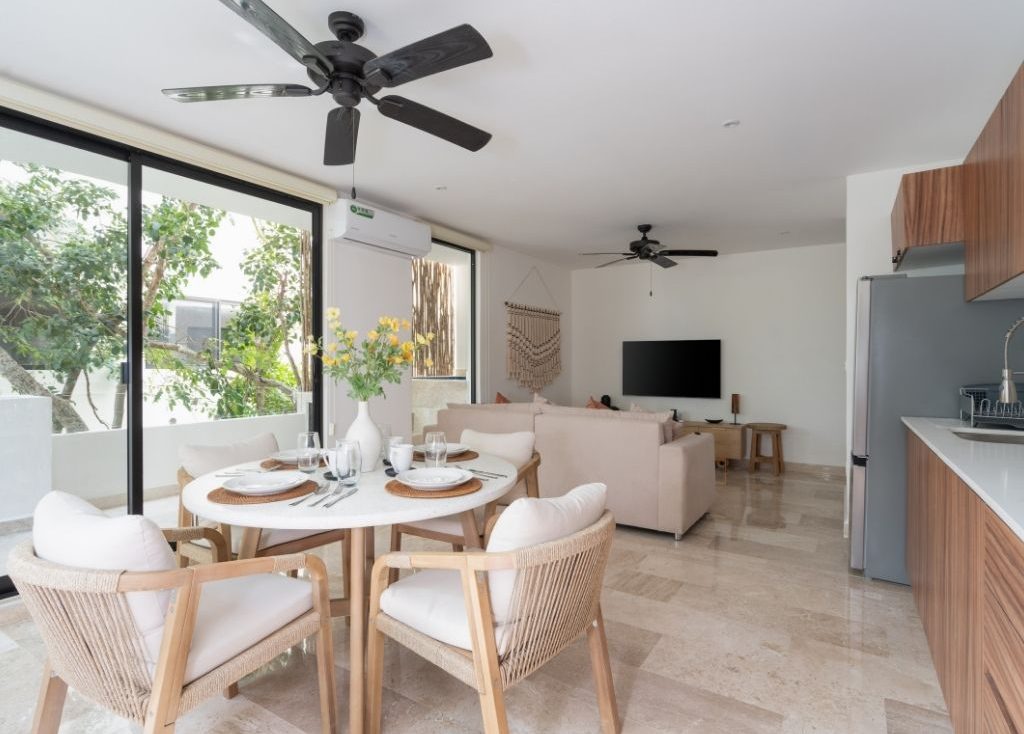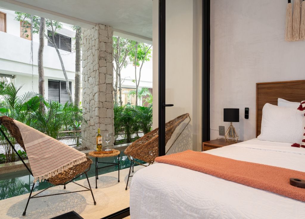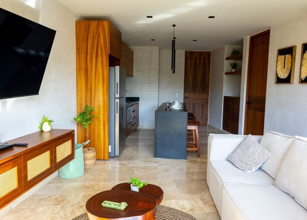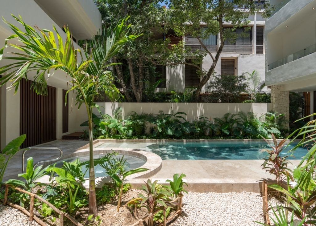 Disfruta de una ubicación inmejorable cuando te quedes en este lugar recientemente inaugurado. Literalmente estás a unos metros caminando de la playa y de la zona más exclusiva de Tulum. Desde el roofgarden con alberca tienes una vista privilegiada de la playa y la selva. Pasa unos días en este hermoso desarrollo y descansa en el departamento que cuenta con todo lo necesario para una gran estancia, incluyendo una terraza amplia y un jacuzzi privado.