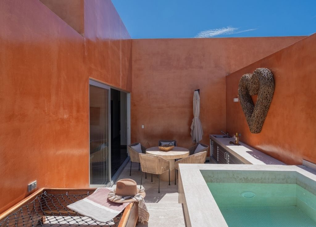 ademas de la comodidad de la entrada a la alberca en tu terraza aprovecha estar a 10 min de la zona de playa o 6 min del pueblo y pocos pasos de bares, restaurantes y mercados a pocos pasos