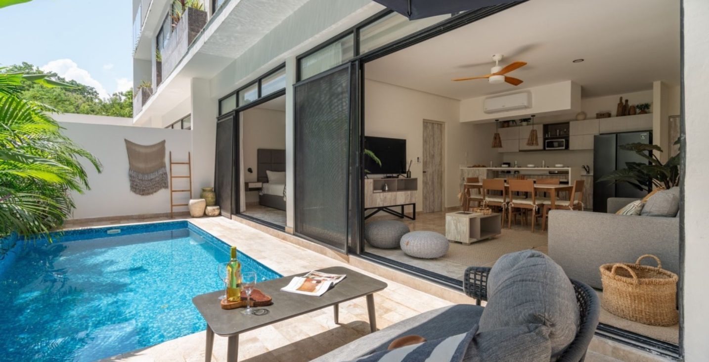 Super espacio 2 recamaras 2 baños, 1 piscina grande y otra pequeña para diversión de toda la familia, con un increíble diseño moderno pero acoplado a la decoración de tulum.