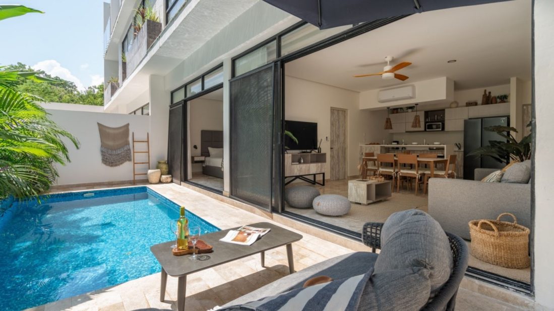 Super espacio 2 recamaras 2 baños, 1 piscina grande y otra pequeña para diversión de toda la familia, con un increíble diseño moderno pero acoplado a la decoración de tulum.