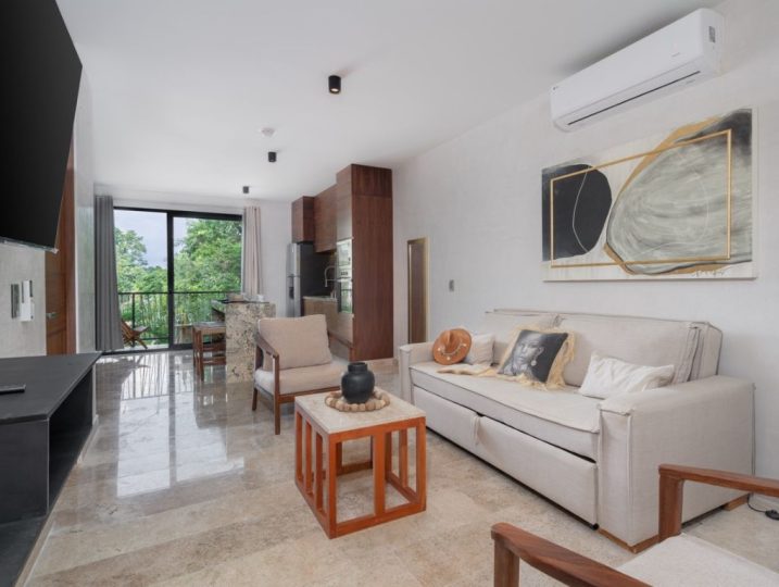 Disfrúta paraíso en este departamento luxuoso y acogedor en el corazón de Aldea Zama, Tulum. Diseñado para parejas, nuestro hogar ofrece: