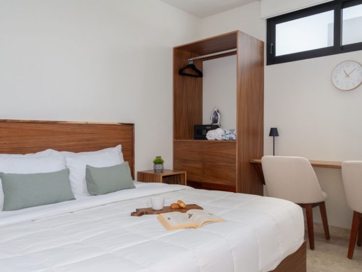 Este lugar único tiene su propio estilo. muy elegante y conveniente ya que cuenta con todas las comodidades para descansar y pasarla bien, una piscina en plata baja y 2 albercas más en roof, a 10 min manejando a la playa y 15 min en Bicicleta a pocos pasos de bares, restaurantes, tiendas, cafes y supermercados.