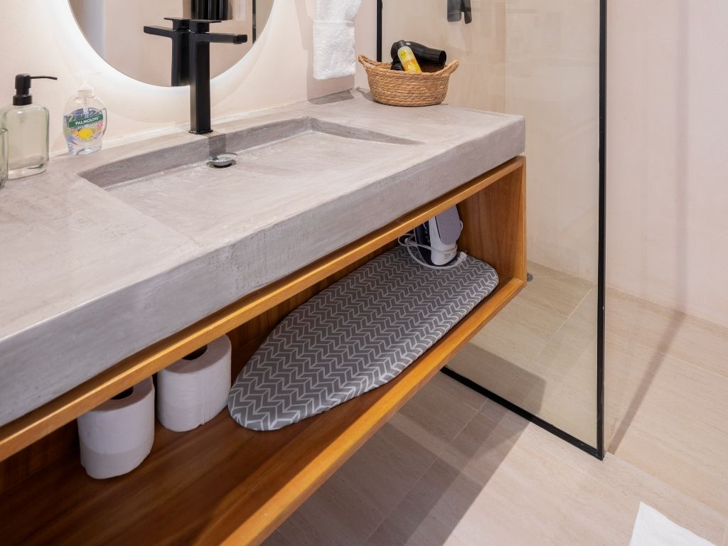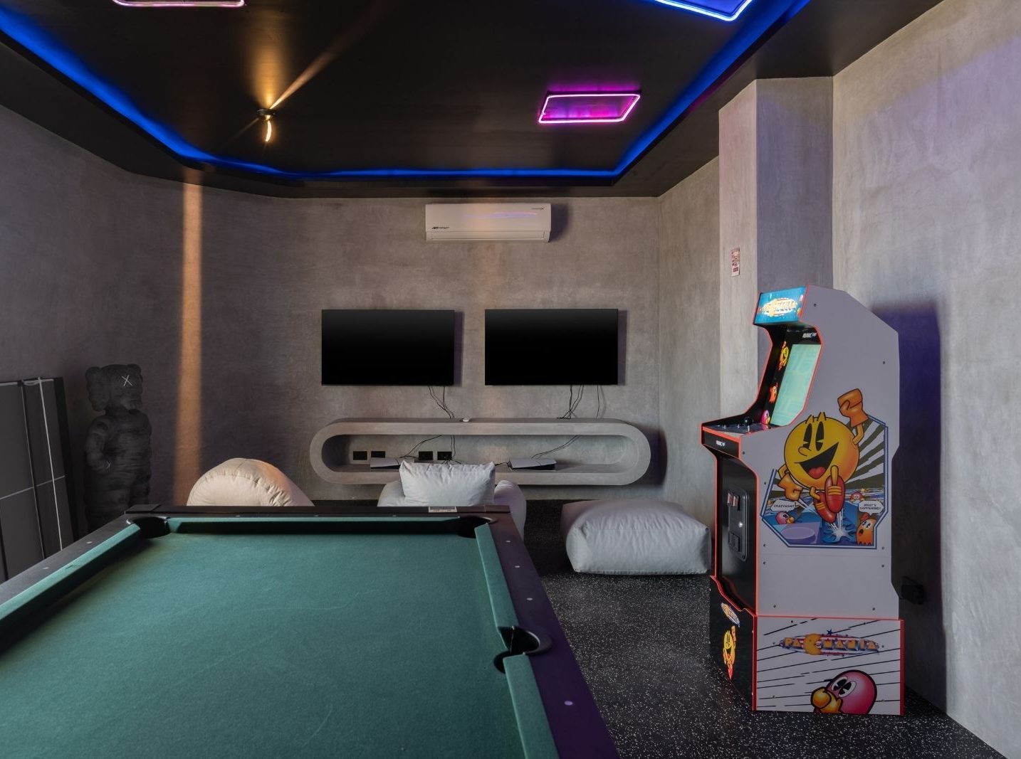 - Amenidades: Agua caliente, Aire acondicionado, Alberca, Alojamiento de un solo piso, Área para trabajar, Artículos básicos de cocina, Asador, Ascensor, Baño, Cafetera, Caja de seguridad para llaves, Caja fuerte, Calefacción y refrigeración, Camastros, Cine, Cocina, Cocina y comedor, Congelador, Copas de vino, Entretenimiento, Equipo para hacer ejercicio, Espacio para guardar ropa, Estacionamiento e instalaciones, Estacionamiento gratuito en la calle, Estacionamiento gratuito en las instalaciones, Estufa eléctrica, Exterior, Ganchos, Gel para baño, Gimnasio, Habitación y lavandería, Internet y oficina, Licuadora, Limpieza disponible durante la estancia, Llegada autónoma, Microondas, Persianas o cortinas opacas, Plancha, Platos y cubiertos, Refrigerador, Ropa de cama, Secadora de pelo, Servicios, Shampoo, Sistema de calefacción sin conductos tipo split, Terraza o balcón, Tostadora, TV, Ventilador de techo, Wifi