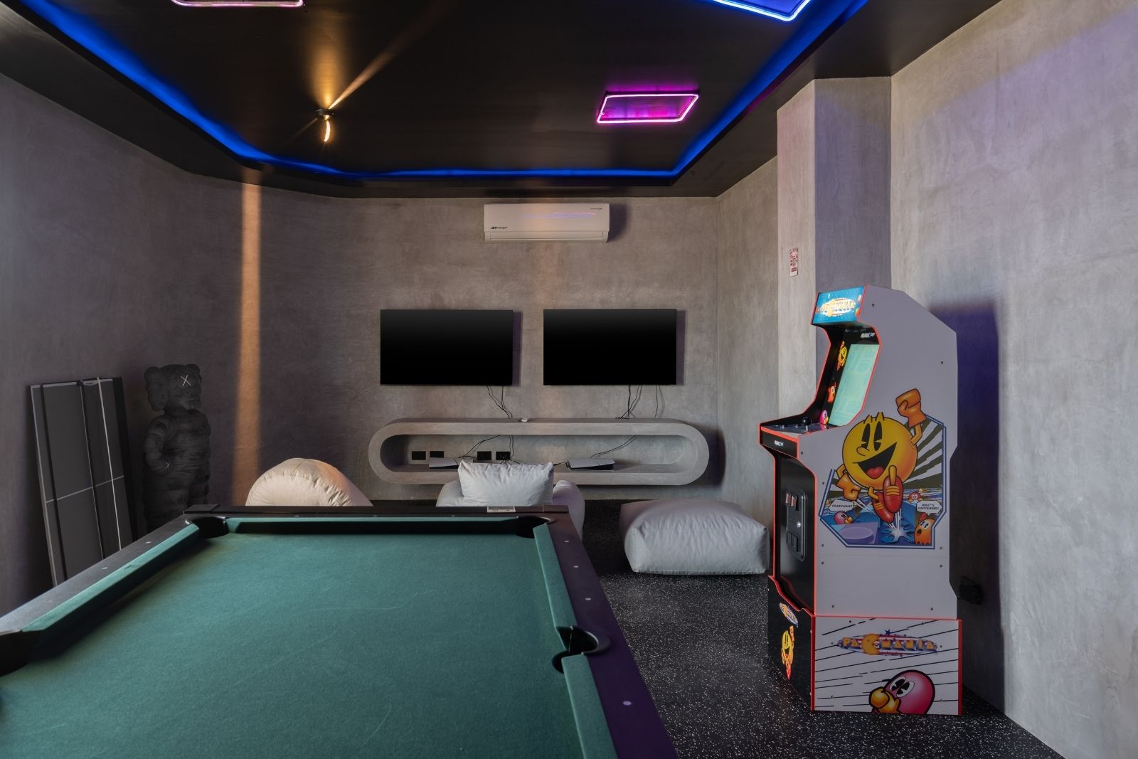 - Amenidades: Agua caliente, Aire acondicionado, Alberca privada: disponible todo el año, Área para trabajar, Artículos básicos de cocina, Ascensor, Baño, Cafetera, Caja de seguridad para llaves, Caja fuerte, Calefacción y refrigeración, Camastros, Cocina, Cocina y comedor, Comedor de aire libre, Congelador, Copas de vino, Disponible para estancias largas, Entretenimiento, Equipo para hacer ejercicio, Espacio para guardar ropa, Estacionamiento e instalaciones, Estacionamiento gratuito en la calle, Estacionamiento gratuito en las instalaciones, Estufa eléctrica, Exterior, Gel para baño, Gimnasio, Habitación y lavandería, Horno, Internet y oficina, Jabón corporal, Jacuzzi privado, Lavadora, Licuadora, Limpieza disponible durante la estancia, Llegada autónoma, Mesa de comedor, Microondas, Muebles exteriores, Patio, Persianas o cortinas opacas, Plancha, Platos y cubiertos, Refrigerador, Ropa de cama, Secadora de pelo, Secadora: Gratis, en el edificio, Servicios, Shampoo, Sistema de calefacción sin conductos tipo split, Terraza o balcón, Tostadora, TV, Ventilador de techo, Wifi
