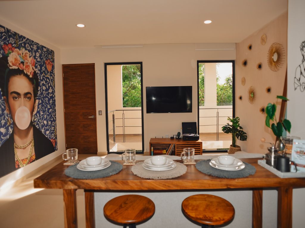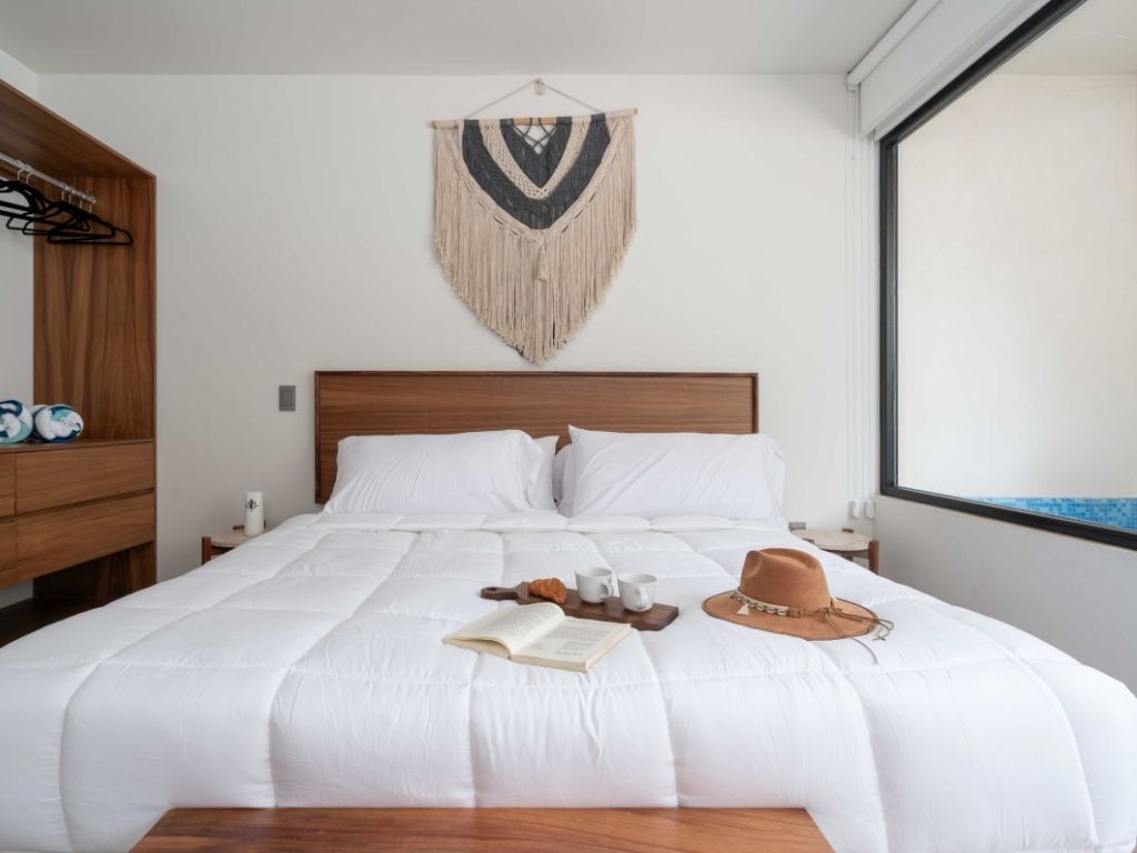 Siéntete como en casa y disfruta todo el espacio de este gran alojamiento muy moderno y comodo, con increíbles amenidades en el edificio para que disfrutes de tus vacaciones al Maximo. condominio ubicado a 10 minutos manejando a la playa y a 15 min en bicicleta. muy pegado a restaurantes, bares y supermercados