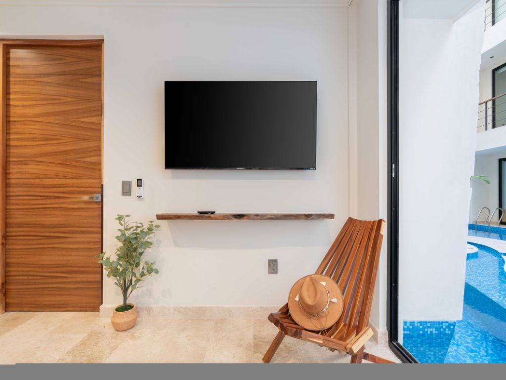 - Amenidades: Agua caliente, Aire acondicionado, Alberca, Alojamiento de un solo piso, Área para trabajar, Artículos básicos de cocina, Ascensor, Baño, Cafetera, Caja de seguridad para llaves, Caja fuerte, Calefacción, Calefacción y refrigeración, Camastros, Cocina, Cocina y comedor, Conexión Ethernet, Entretenimiento, Equipo para hacer ejercicio, Espacio para guardar ropa, Estacionamiento e instalaciones, Estacionamiento gratuito en las instalaciones, Estufa eléctrica, Exterior, Ganchos, Gimnasio, Habitación y lavandería, Internet y oficina, Lavadora: Gratis, en el edificio, Licuadora, Limpieza disponible durante la estancia, Llegada autónoma, Muebles exteriores, Persianas o cortinas opacas, Plancha, Platos y cubiertos, Refrigerador, Ropa de cama, Secadora de pelo, Secadora: Gratis, en el edificio, Servicios, Shampoo, Terraza o balcón, TV, Wifi