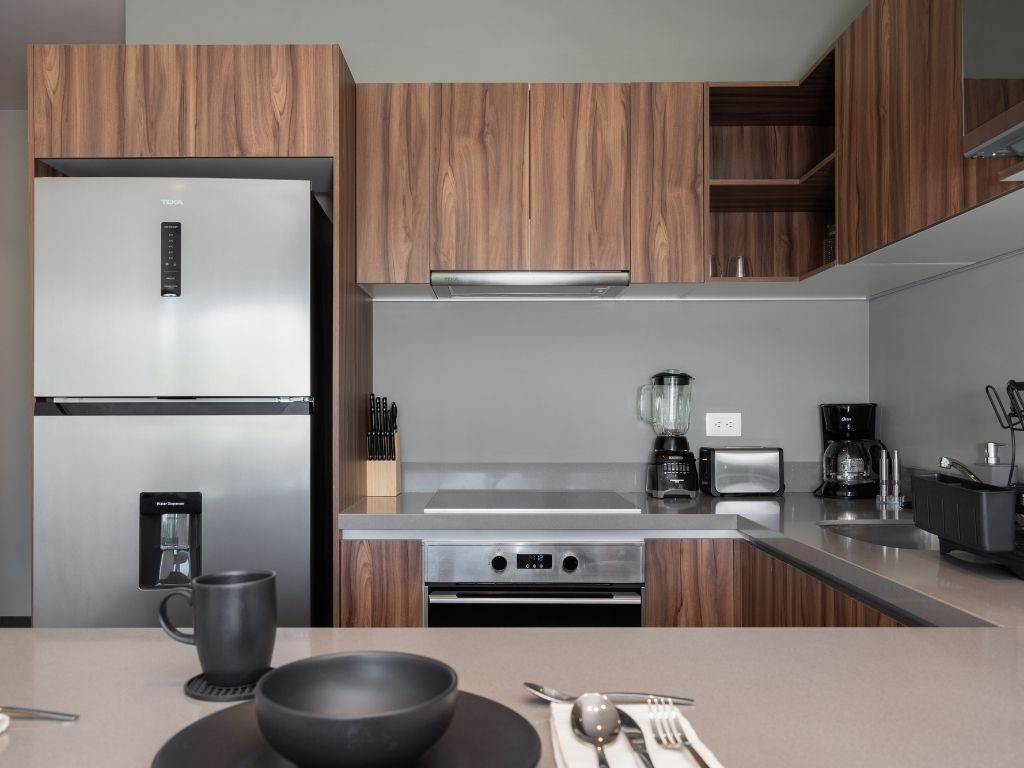 - Amenidades: Agua caliente, Aire acondicionado, Alberca, Área para trabajar, Artículos básicos de cocina, Ascensor, Baño, Cafetera, Caja de seguridad para llaves, Caja fuerte, Calefacción y refrigeración, Camastros, Cocina, Cocina y comedor, Copas de vino, Entretenimiento, Equipo para hacer ejercicio, Espacio para guardar ropa, Estacionamiento e instalaciones, Estacionamiento gratuito en las instalaciones, Estufa eléctrica, Exterior, Ganchos, Gimnasio, Habitación y lavandería, Internet y oficina, Licuadora, Limpieza disponible durante la estancia, Llegada autónoma, Microondas, Muebles exteriores, Persianas o cortinas opacas, Plancha, Refrigerador, Ropa de cama, Secadora de pelo, Servicios, Shampoo, TV, Wifi