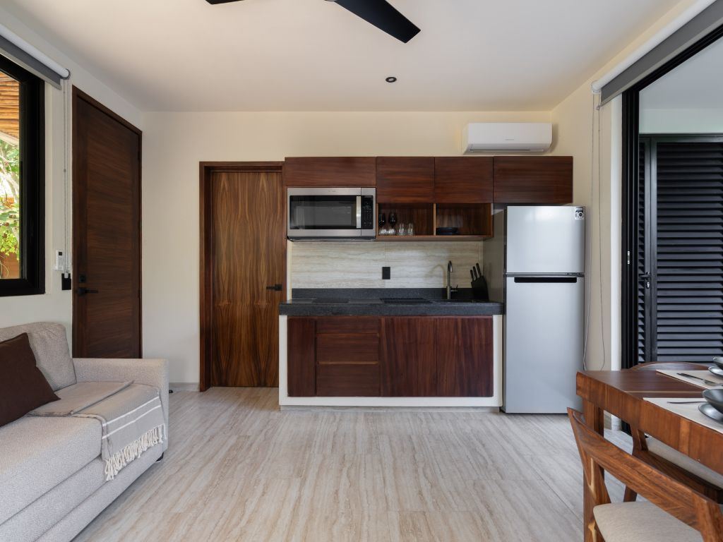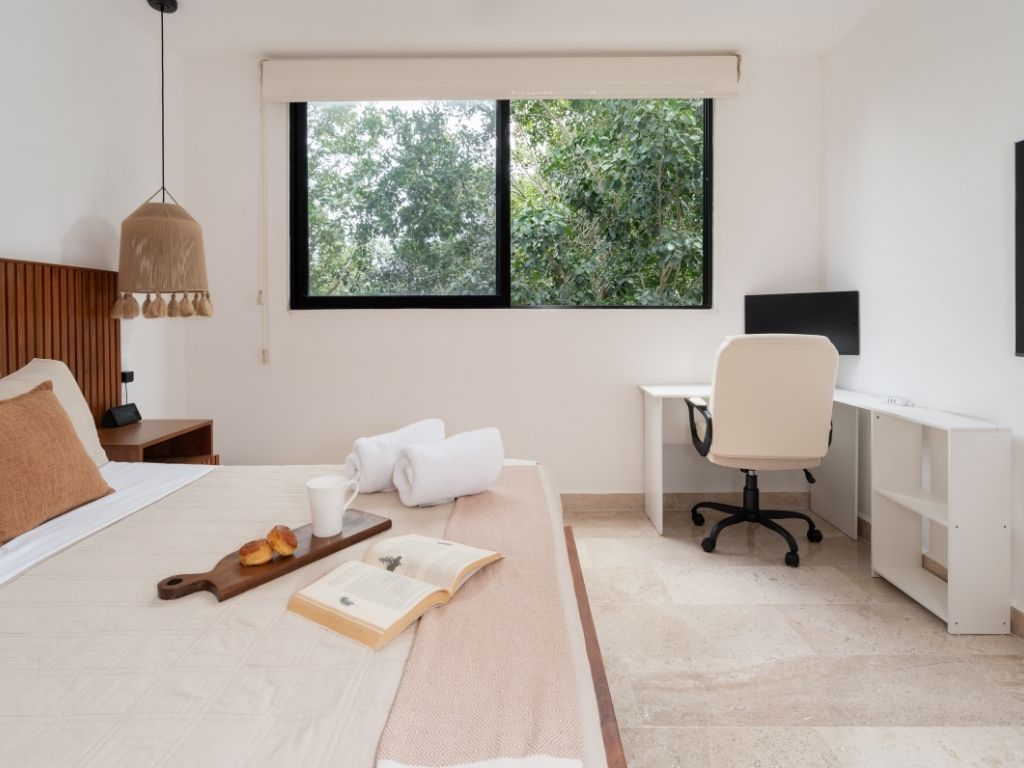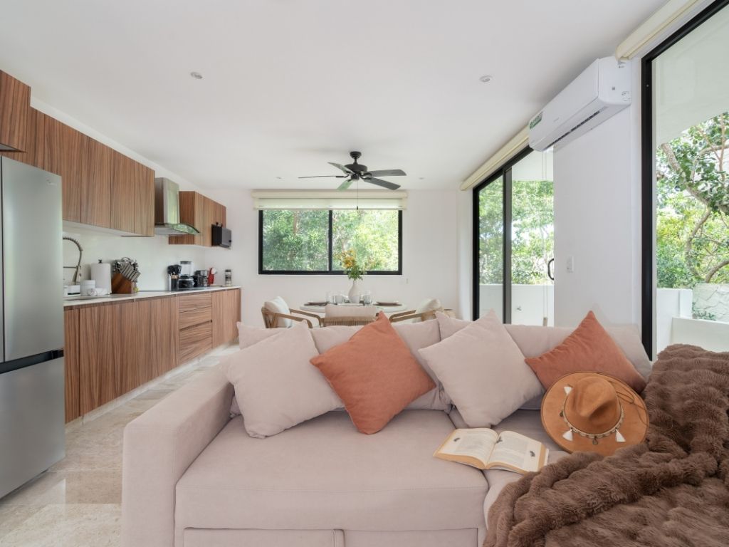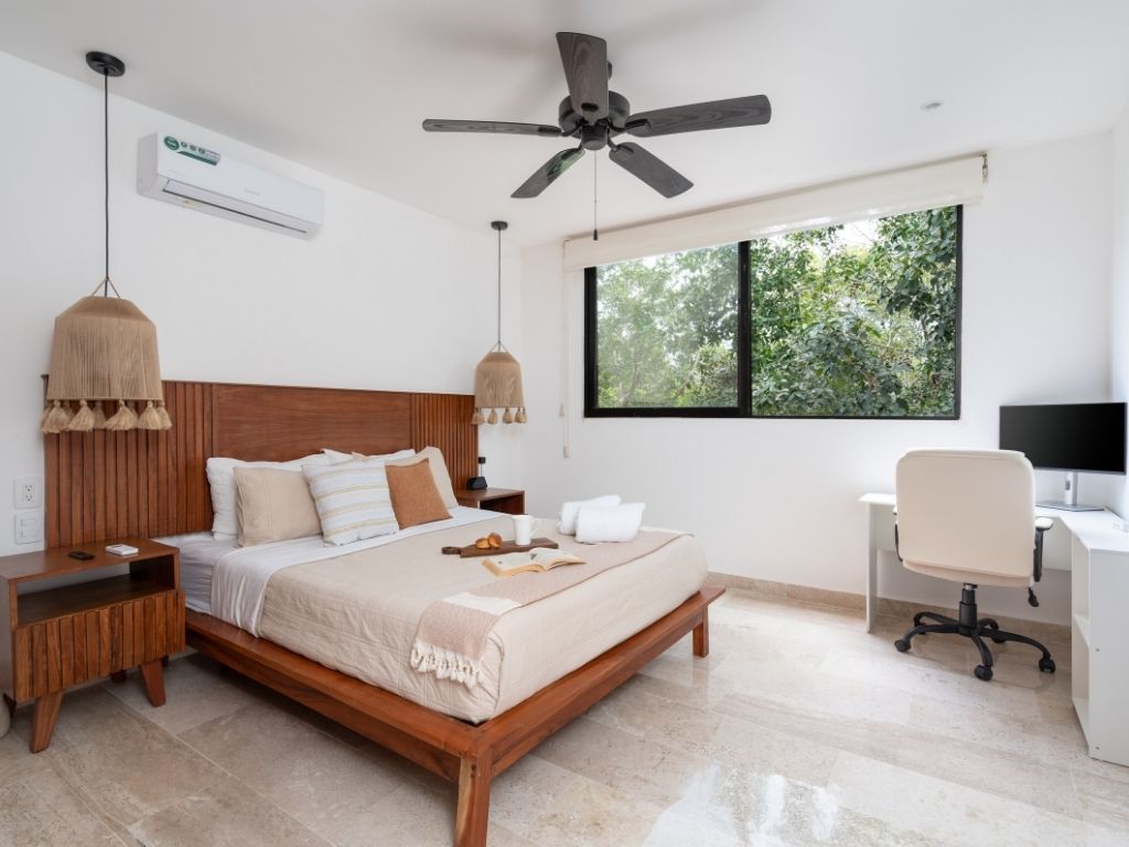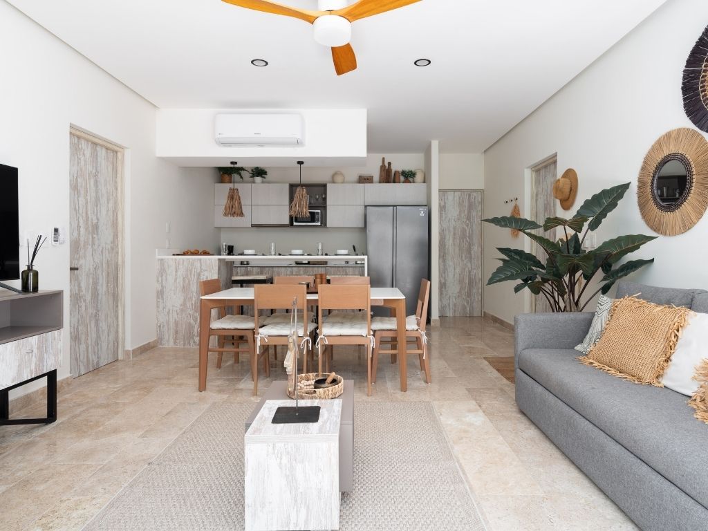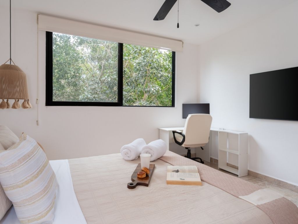 Perfecto para escapadas en familia o con amigos, este departamento de 2 habitaciones te ofrece comodidad y ambiente relajado en Tulum. Con espacios bien distribuidos, decoración moderna y una atmósfera tranquila, tendrás todo lo necesario para descansar tras explorar la zona.