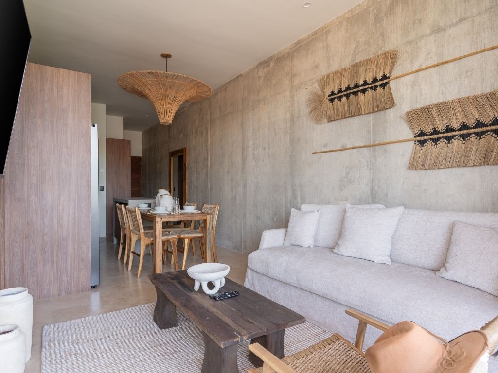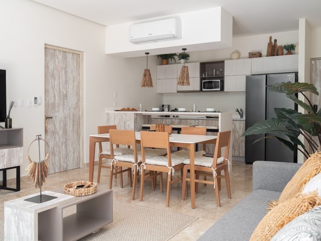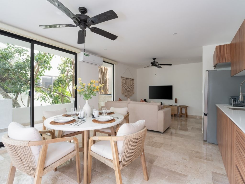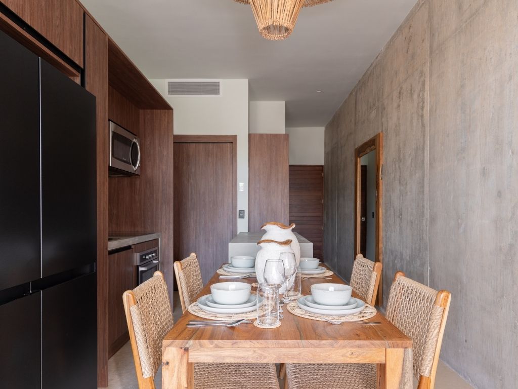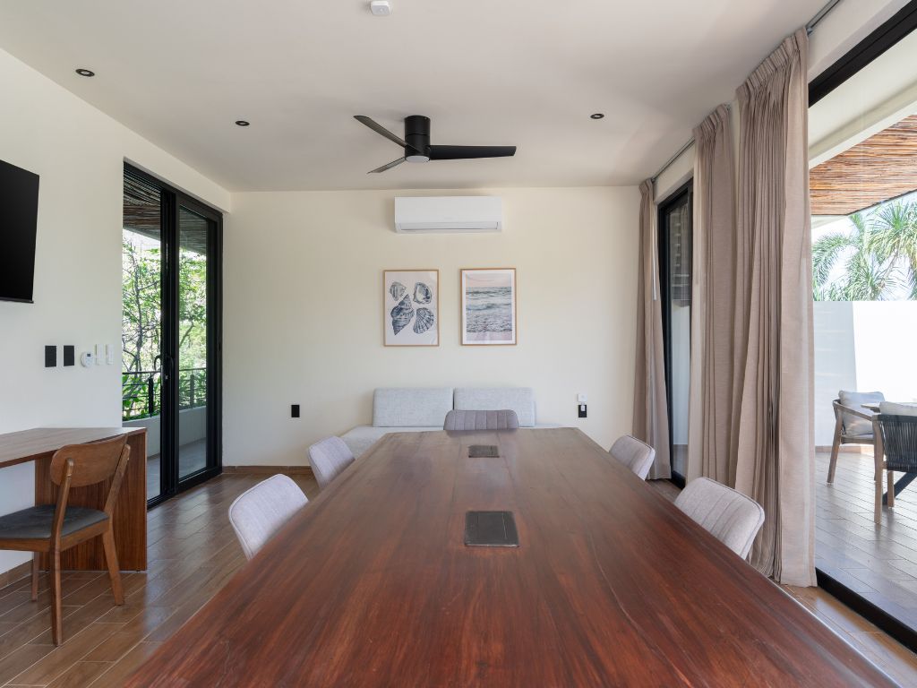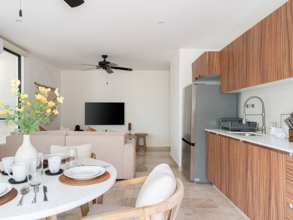 Perfecto para escapadas en familia o con amigos, este departamento de 2 habitaciones te ofrece comodidad y ambiente relajado en Tulum. Con espacios bien distribuidos, decoración moderna y una atmósfera tranquila, tendrás todo lo necesario para descansar tras explorar la zona.