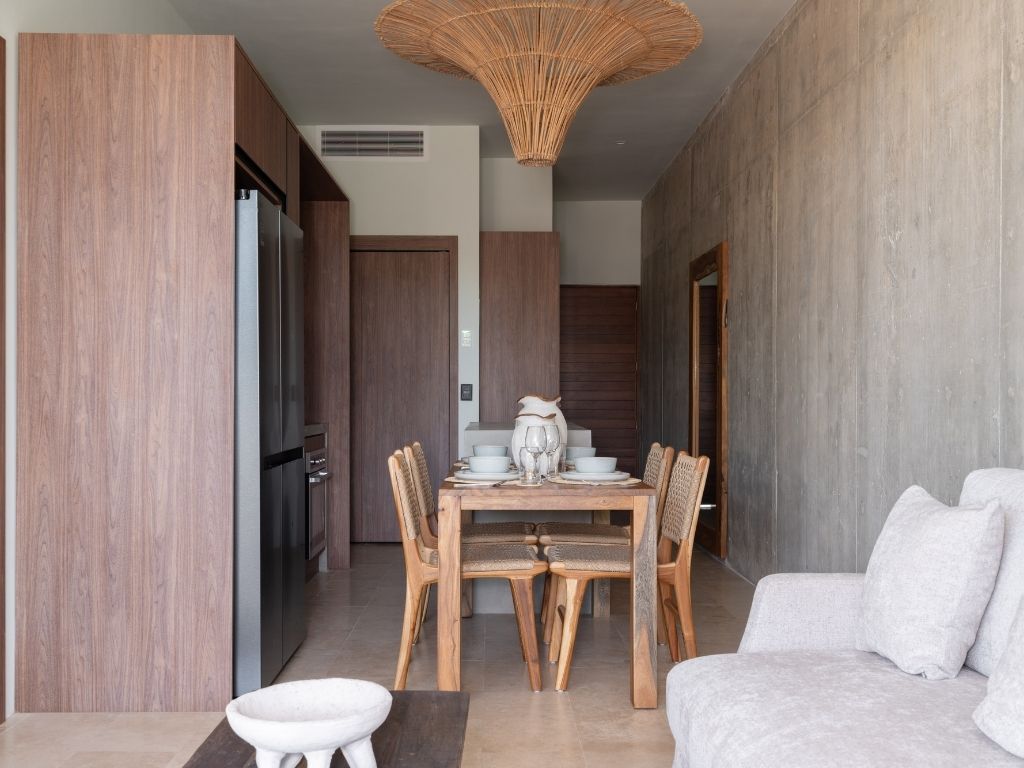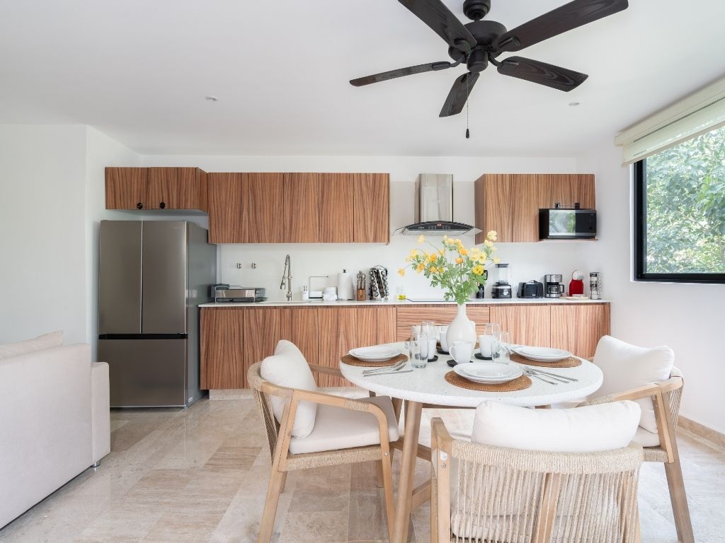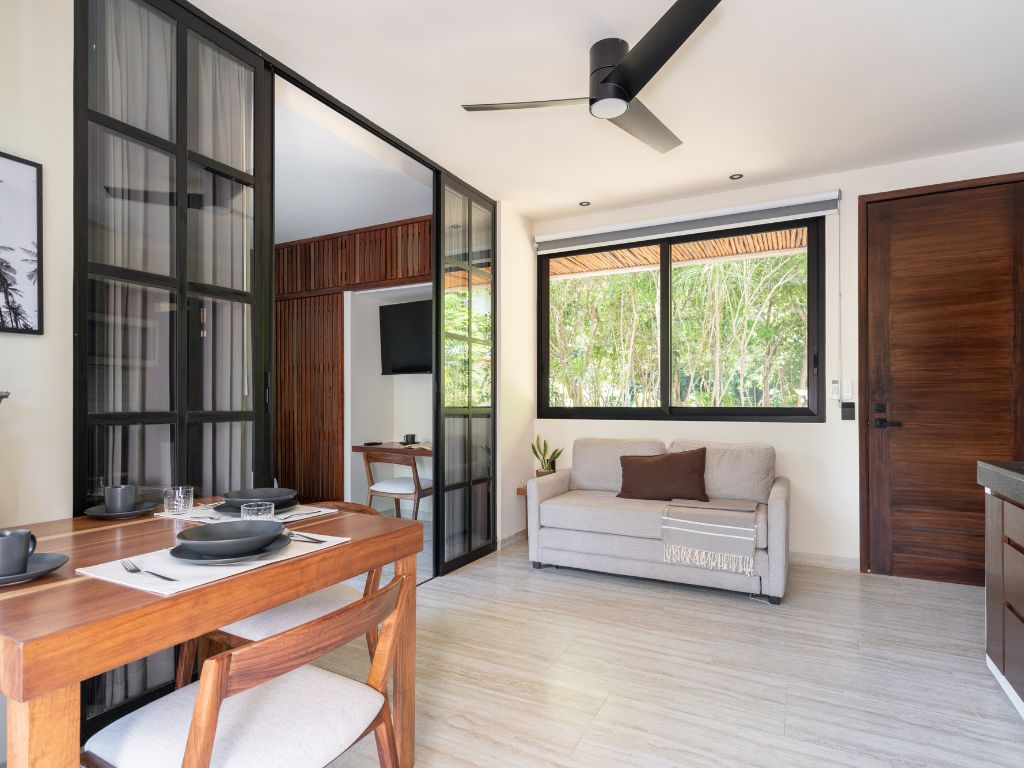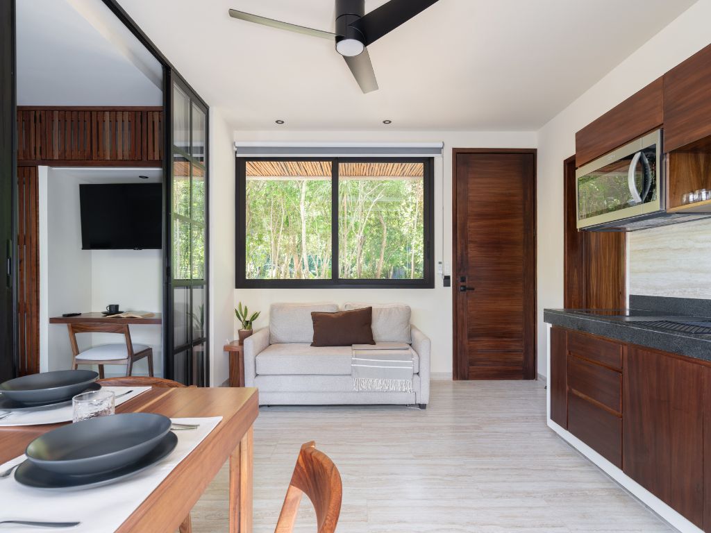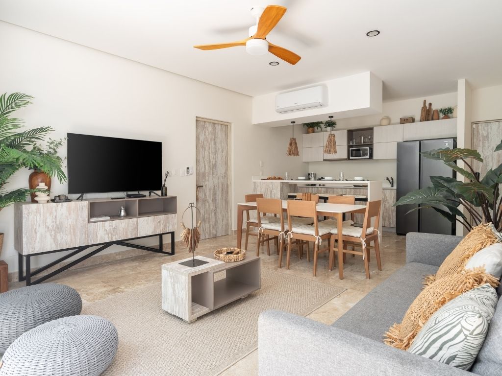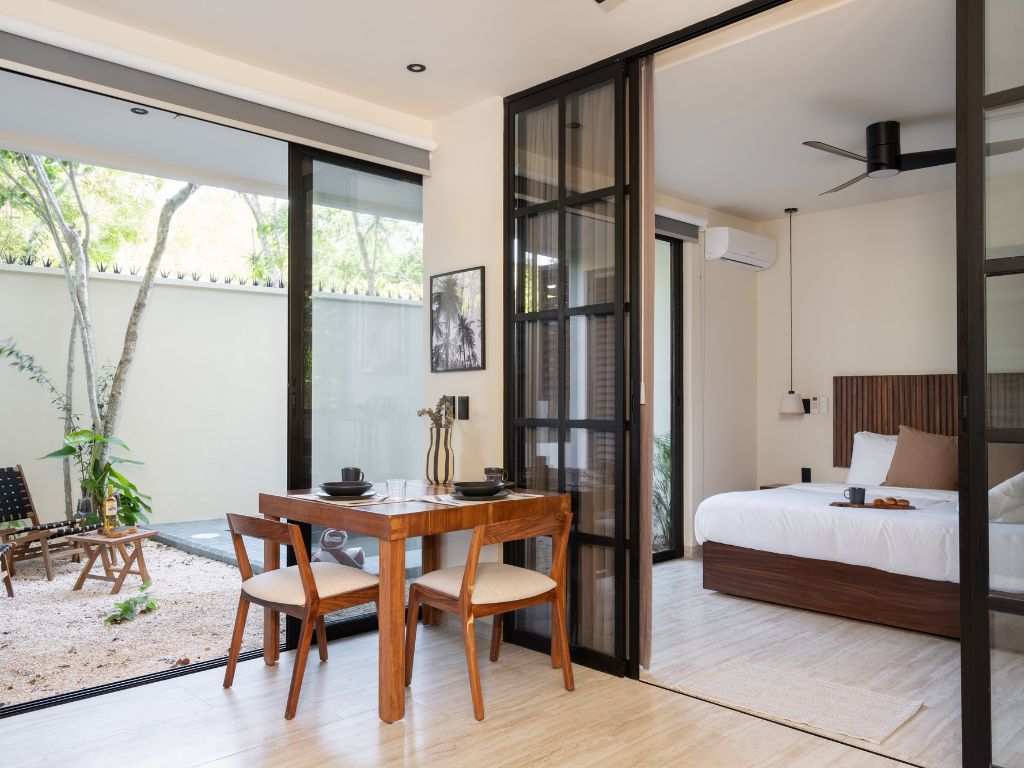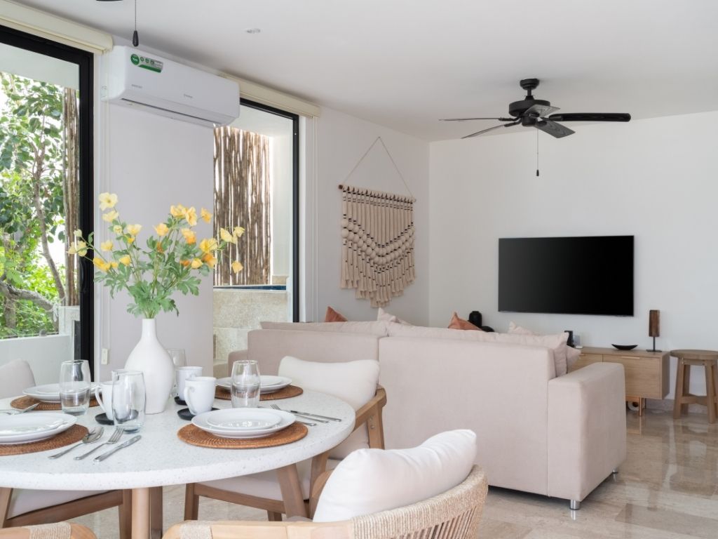 Perfecto para escapadas en familia o con amigos, este departamento de 2 habitaciones te ofrece comodidad y ambiente relajado en Tulum. Con espacios bien distribuidos, decoración moderna y una atmósfera tranquila, tendrás todo lo necesario para descansar tras explorar la zona.