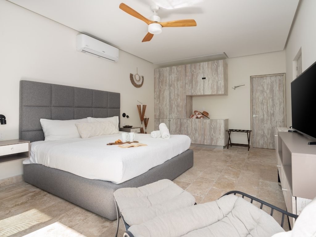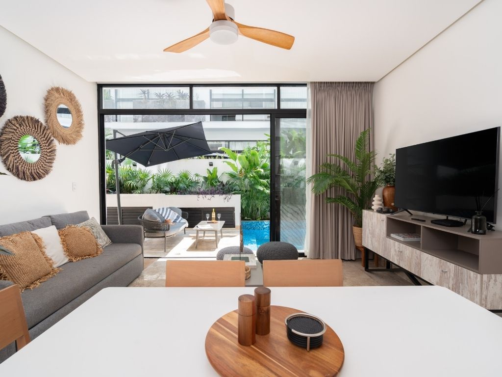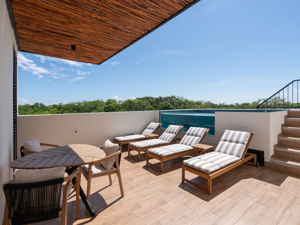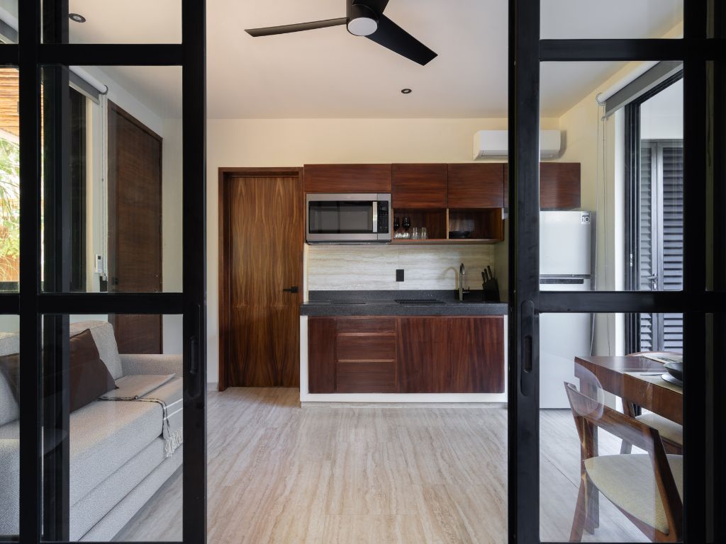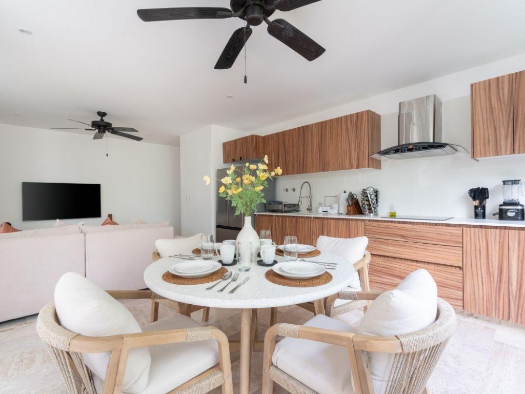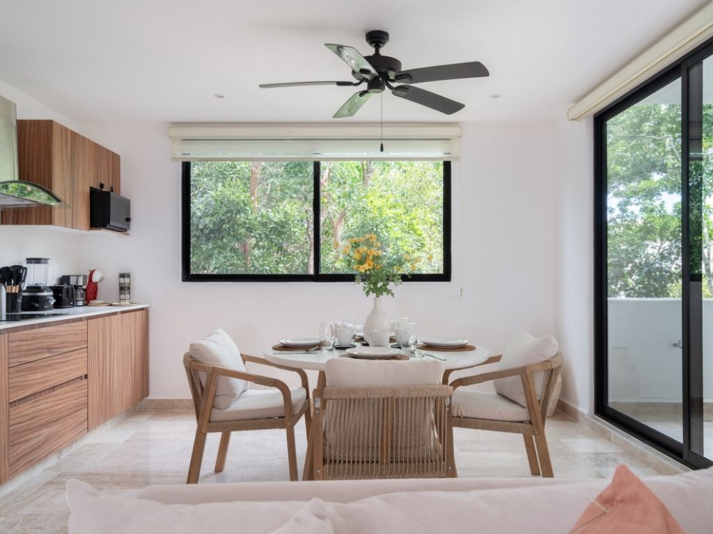 Perfecto para escapadas en familia o con amigos, este departamento de 2 habitaciones te ofrece comodidad y ambiente relajado en Tulum. Con espacios bien distribuidos, decoración moderna y una atmósfera tranquila, tendrás todo lo necesario para descansar tras explorar la zona.