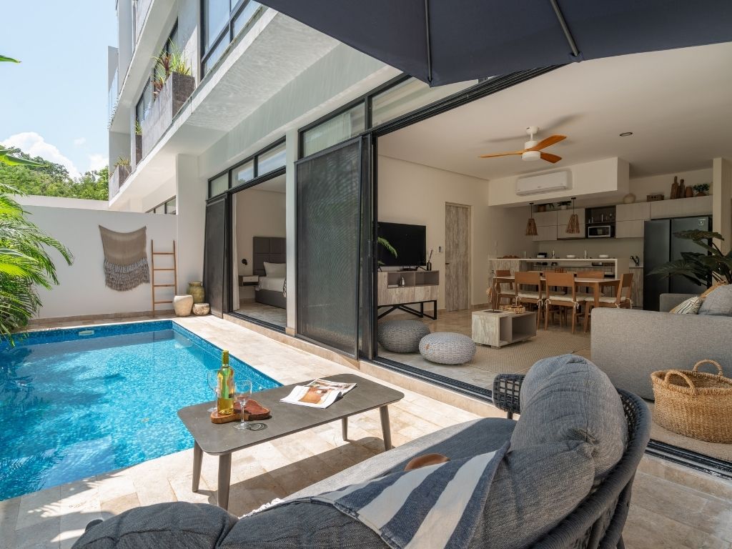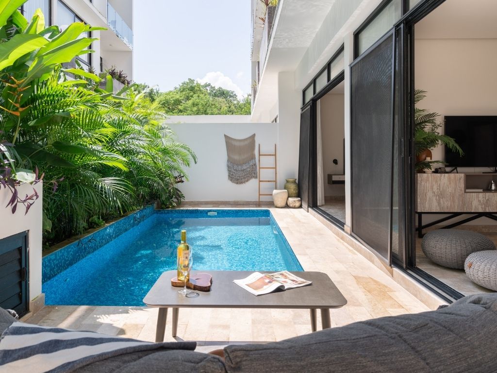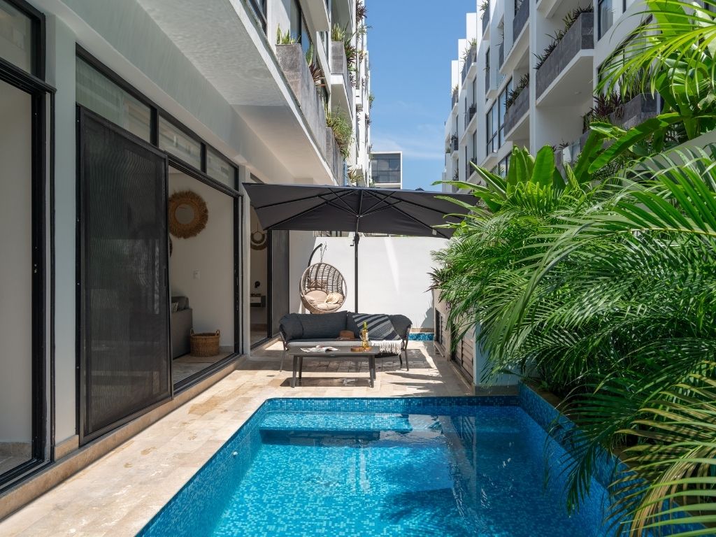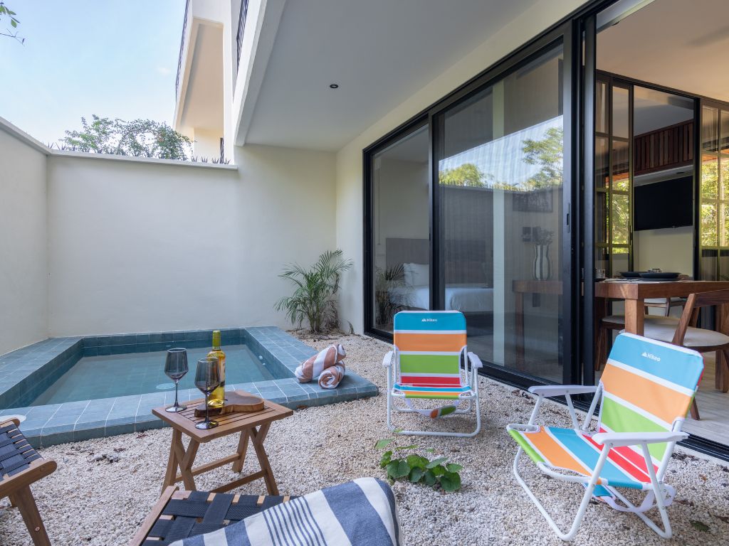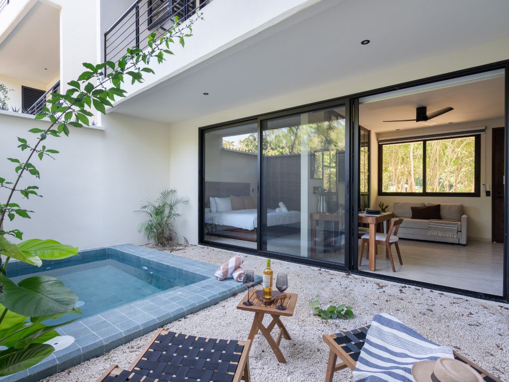 Disfruta del espacio y confort de este amplio alojamiento, a solo 4 minutos en coche de la playa y 11 del centro. Relájate en tu alberca privada o en las dos comunes: una con vista panorámica a la selva y otra rodeada de vegetación que evoca un cenote natural. Además, cuenta con coworking moderno y … Continue reading “Zen Estudio cerca de la playa. Comodidades increíbles.”