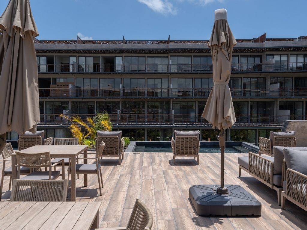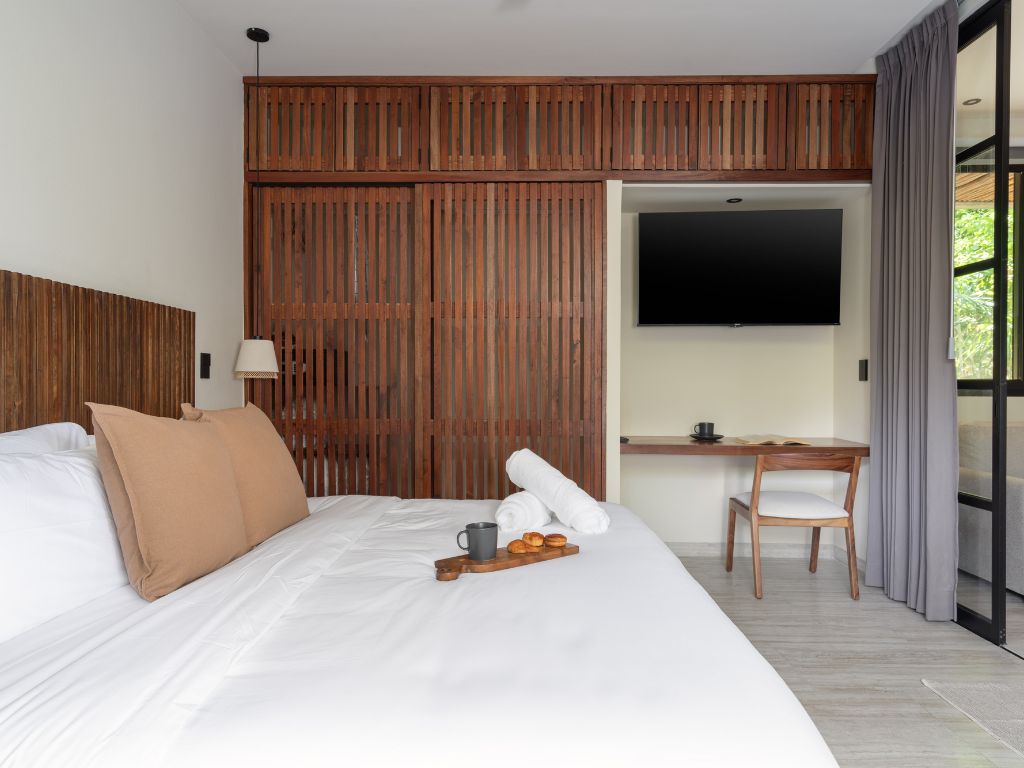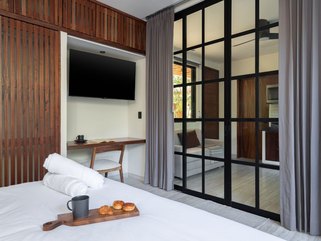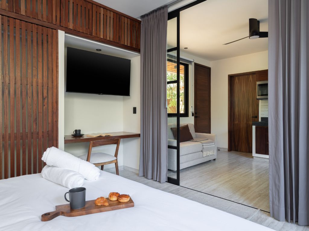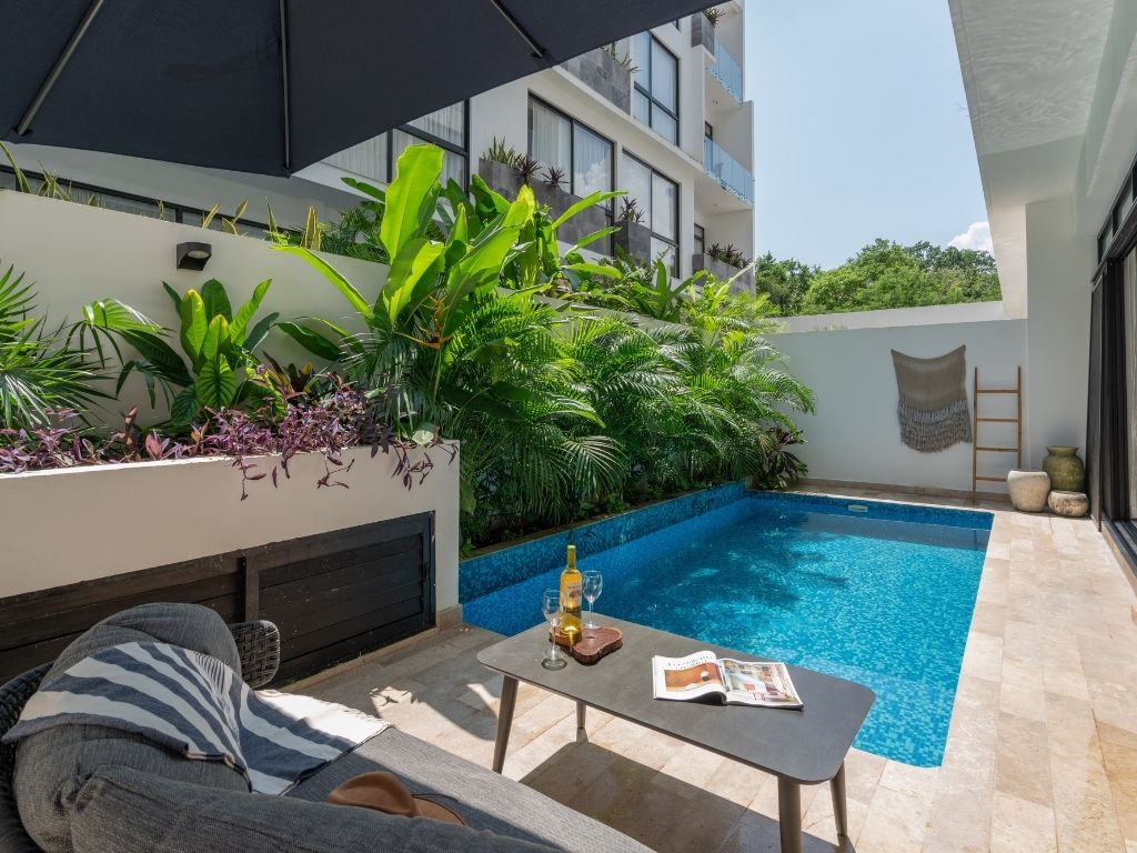 Disfruta del espacio y confort de este amplio alojamiento, a solo 4 minutos en coche de la playa y 11 del centro. Relájate en tu alberca privada o en las dos comunes: una con vista panorámica a la selva y otra rodeada de vegetación que evoca un cenote natural. Además, cuenta con coworking moderno y … Continue reading “Zen Estudio cerca de la playa. Comodidades increíbles.”