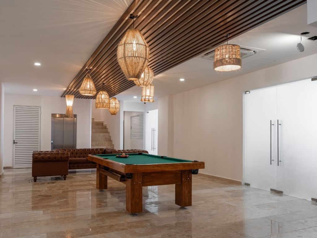 - Amenidades: Agua caliente, Aire acondicionado, Alberca, Alojamiento de un solo piso, Área para trabajar, Artículos básicos de cocina, Ascensor, Baño, Básicos de playa, Cafetera, Caja de seguridad para llaves, Caja fuerte, Calefacción y refrigeración, Camastros, Cocina, Cocina y comedor, Comedor de aire libre, Congelador, Copas de vino, Disponible para estancias largas, Entretenimiento, Equipo para hacer ejercicio, Espacio para guardar ropa, Estacionamiento e instalaciones, Estufa eléctrica, Exterior, Ganchos, Gel para baño, Gimnasio, Habitación y lavandería, Internet y oficina, Jabón corporal, Licuadora, Limpieza disponible durante la estancia, Llegada autónoma, Mesa de comedor, Microondas, Mosquitero, Muebles exteriores, Patio, Persianas o cortinas opacas, Platos y cubiertos, Refrigerador, Ropa de cama, Secadora de pelo, Servicios, Shampoo, Tostadora, TV, Ventilador de techo, Wifi